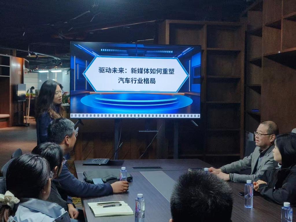 作为国内首个央媒汽车直播基地,新华网汽车直播基地依托新华网媒体矩阵优势,已建成8万平米运营空间、100余个专业直播间,服务一汽、东风、吉利等30余家汽车集团,运营账号超1500个,形成从内容策划到销售转化的完整汽车新媒体生态链。基地负责人向师生详细介绍了汽车直播的行业现状与发展前景,重点展示了虚拟直播技术、多机位导播系统等现代化教学实践场景。